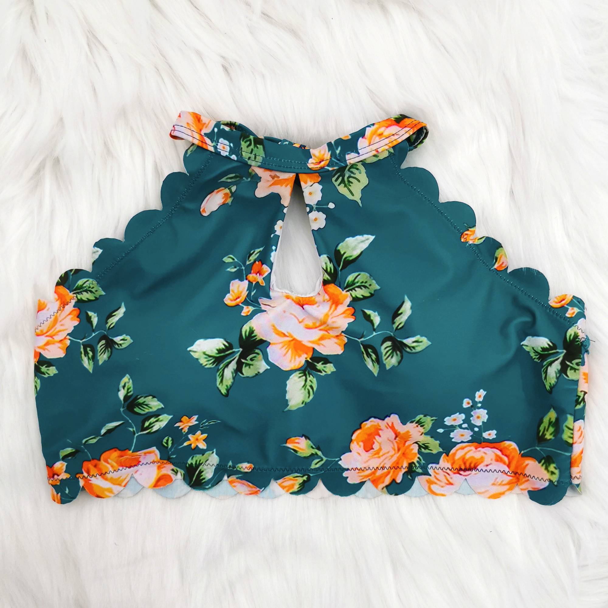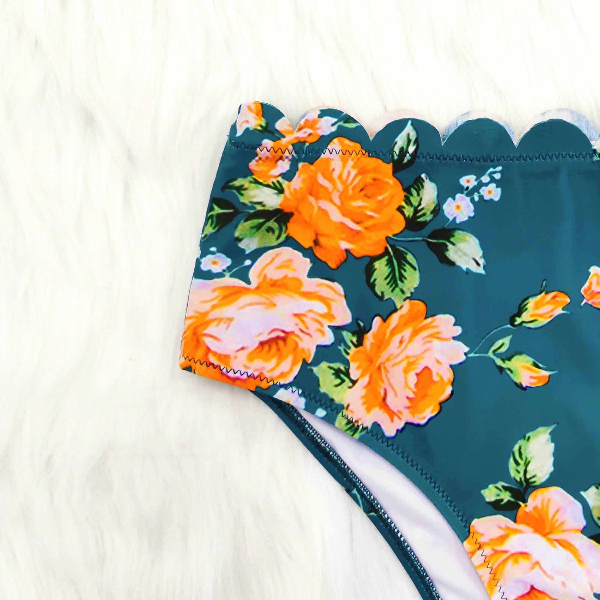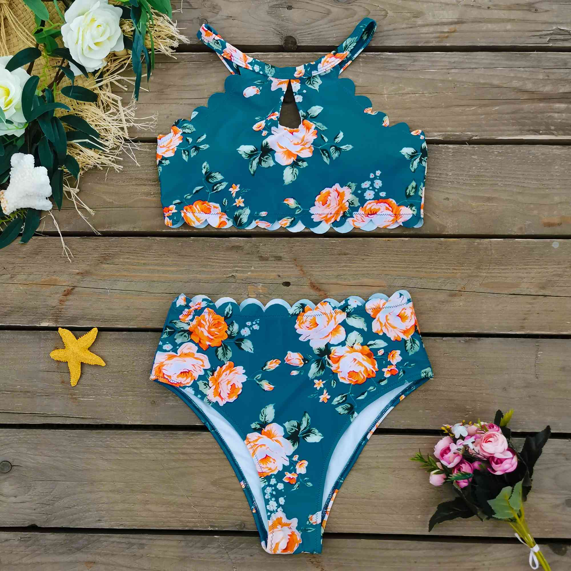 Halter-Neck Floral Falbala Bikini Swimsuit