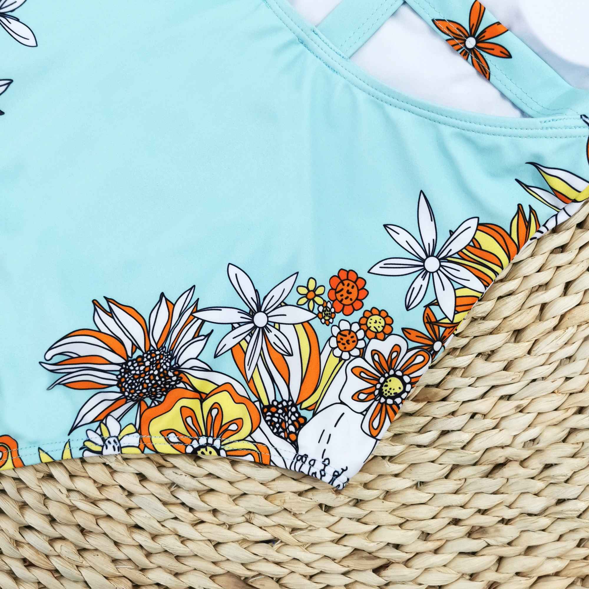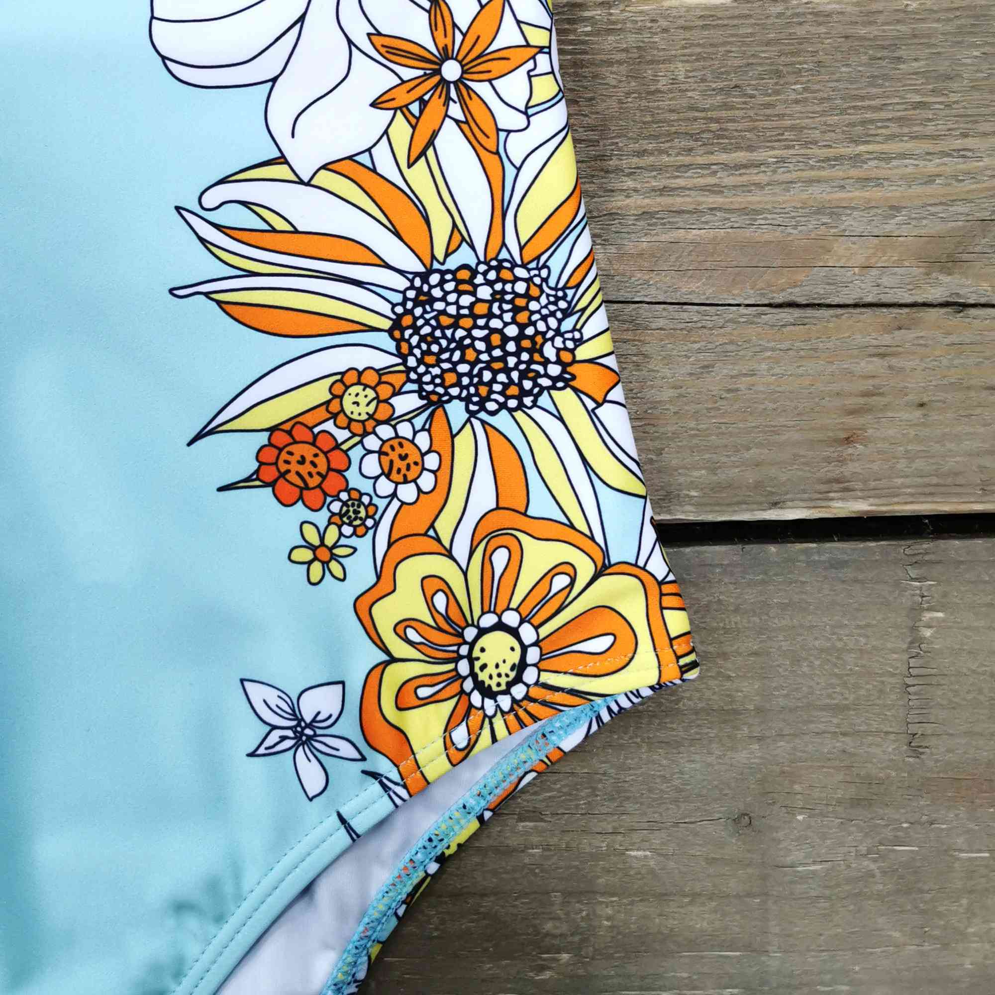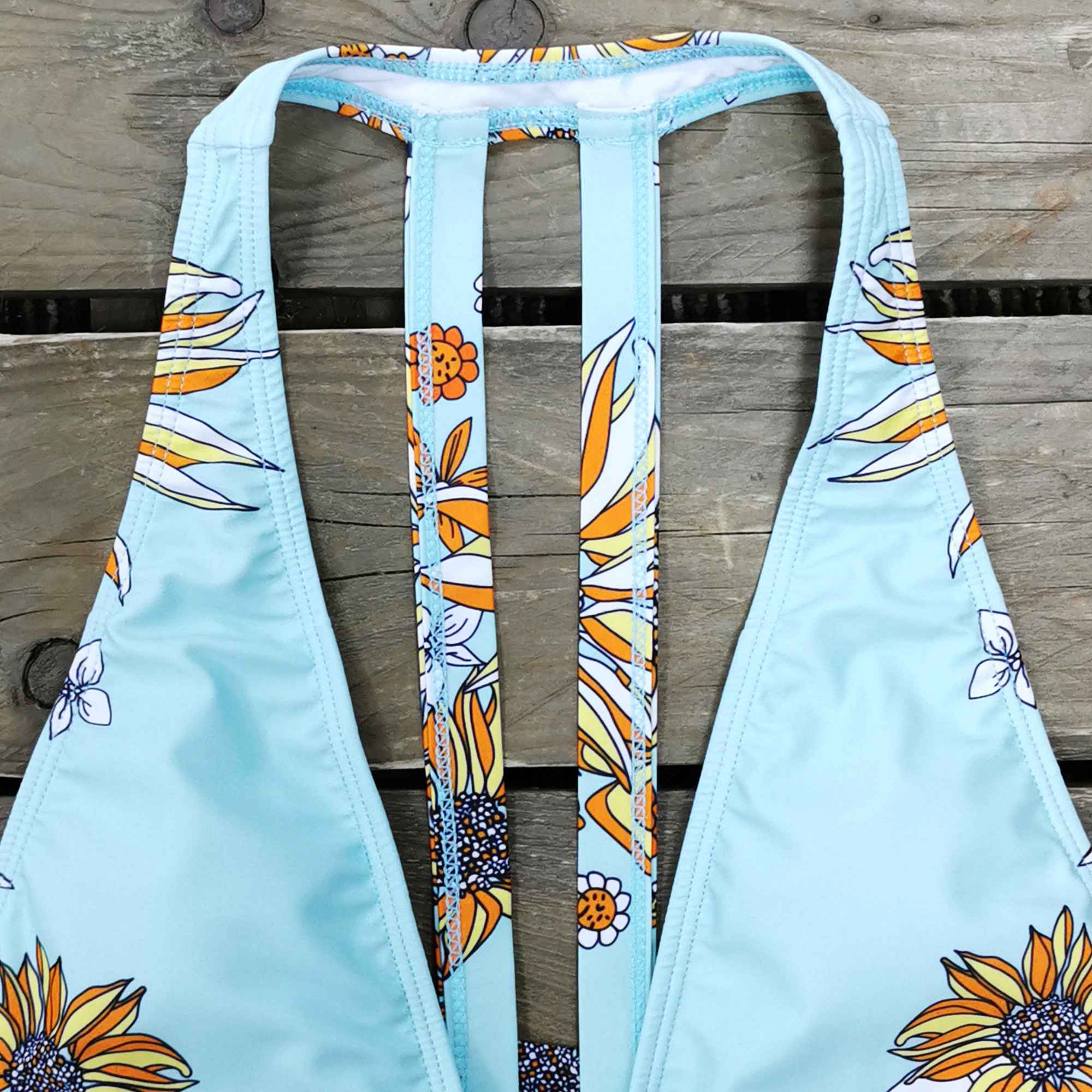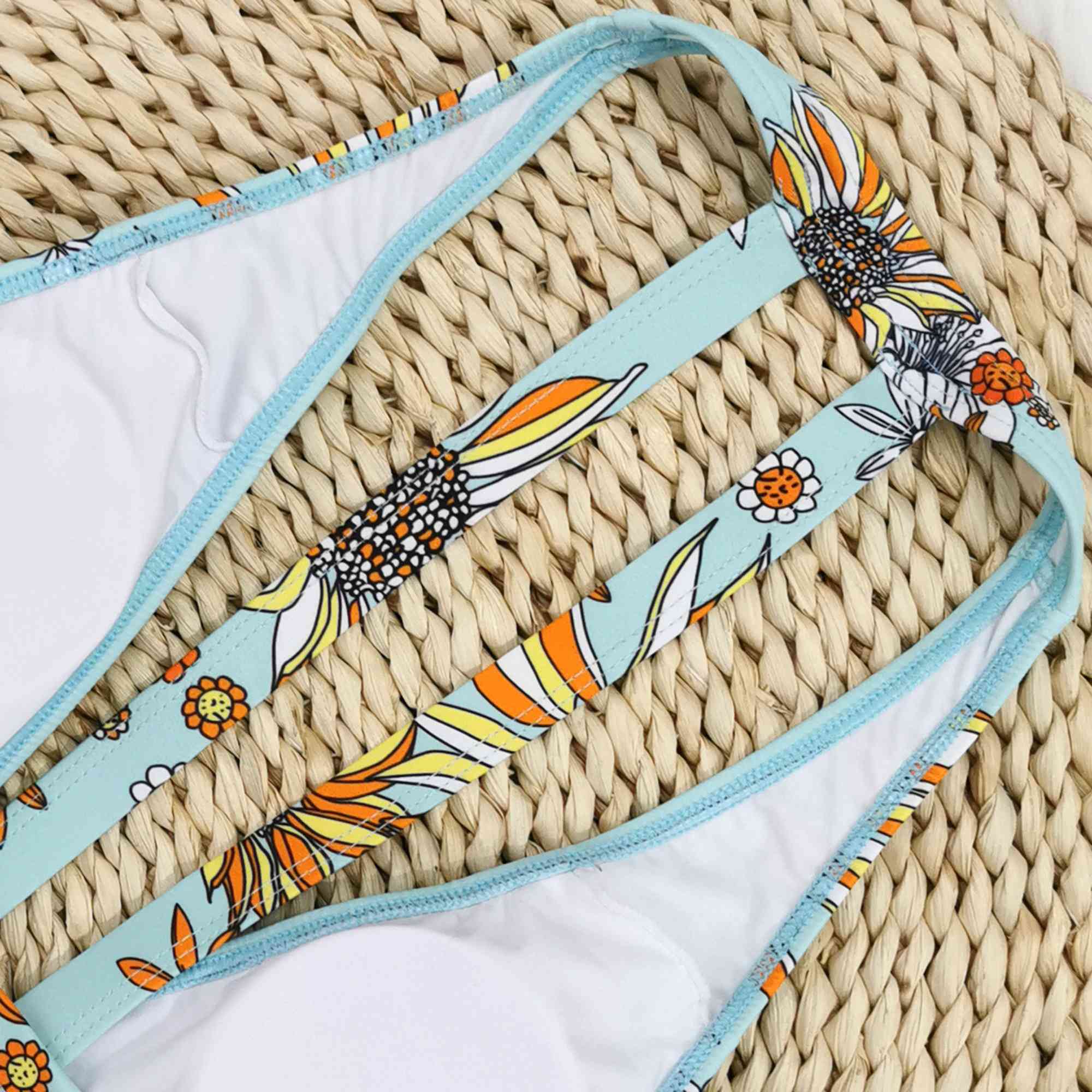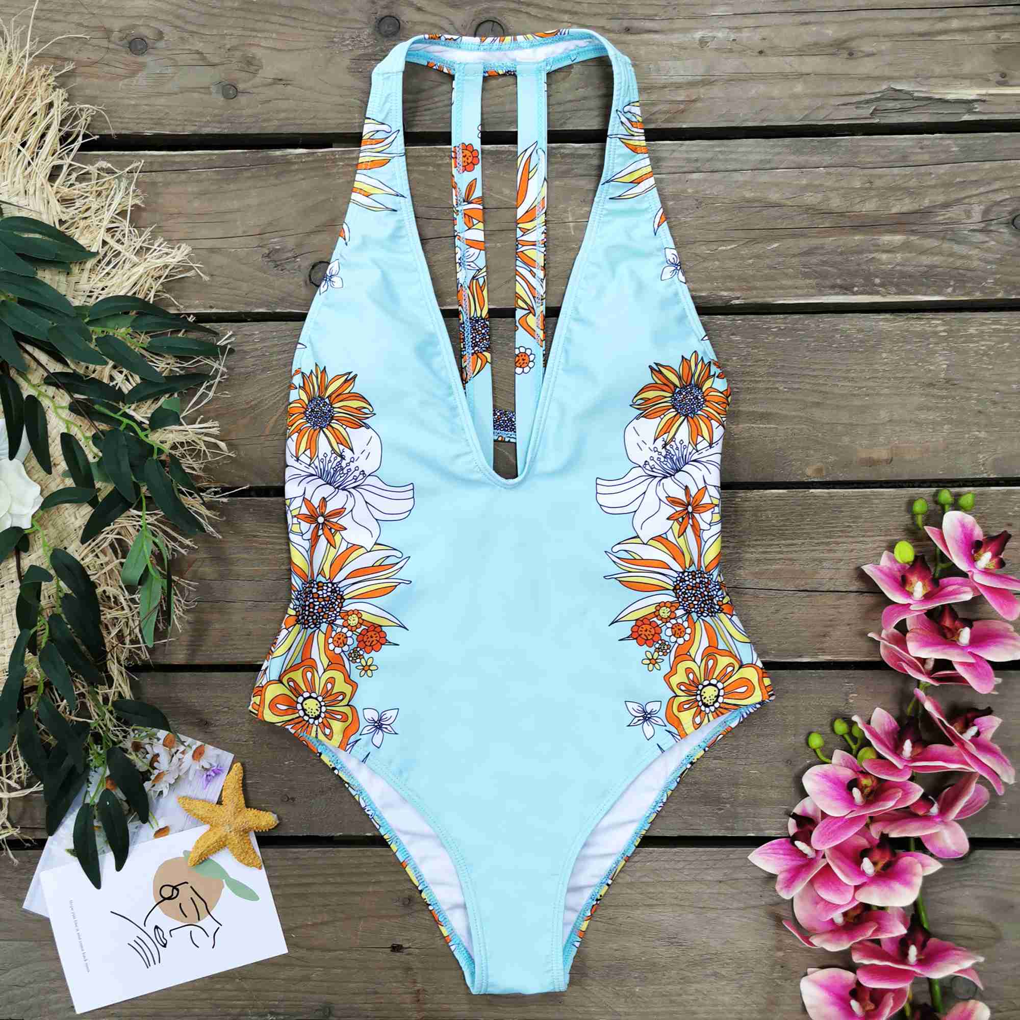 Sexy Deep V Neck Hollow Backless Printing One-Piece Swimwear