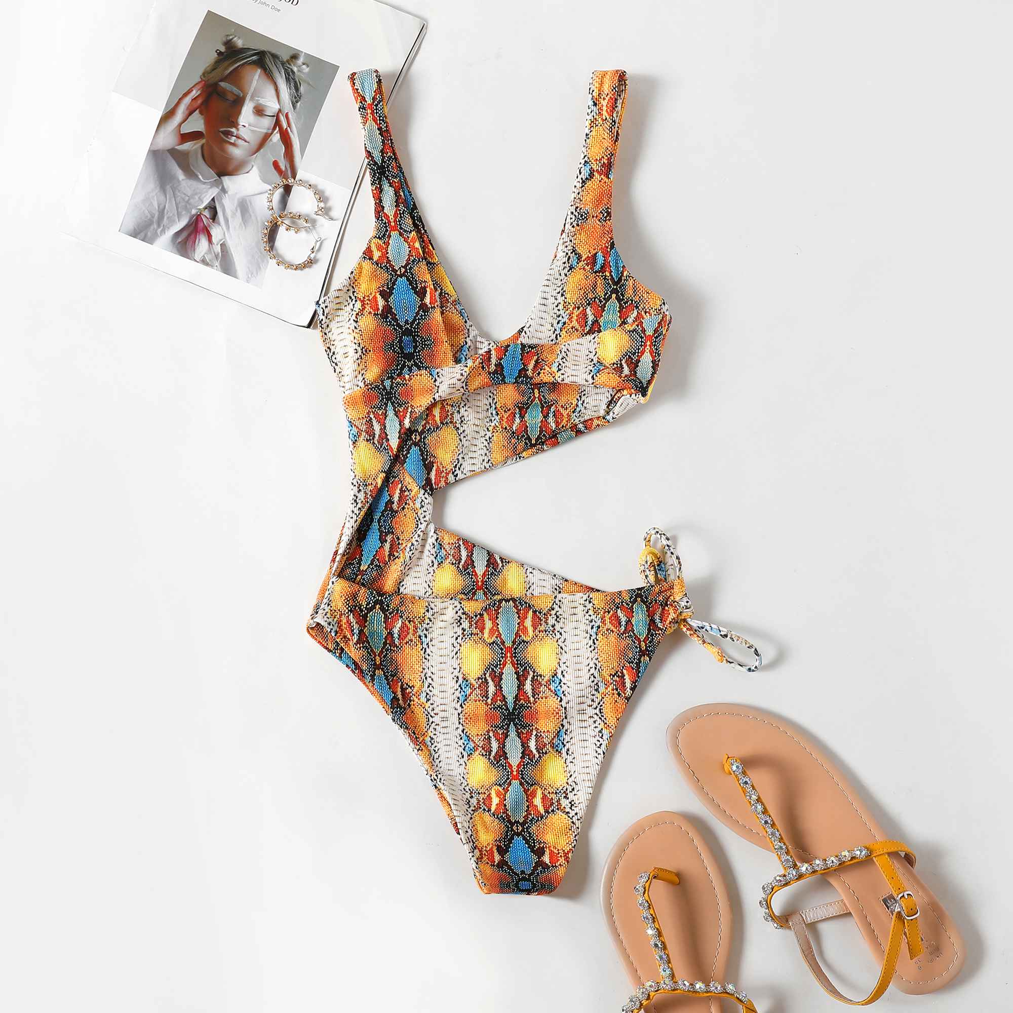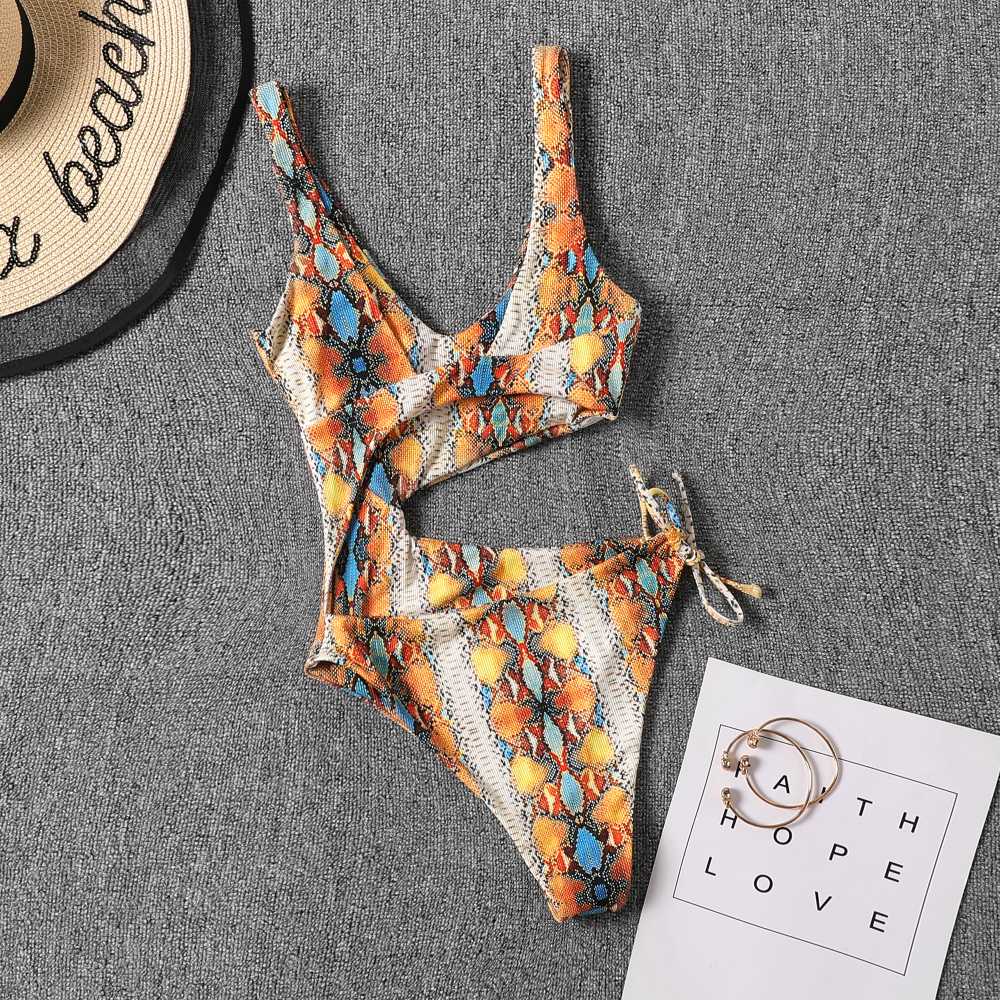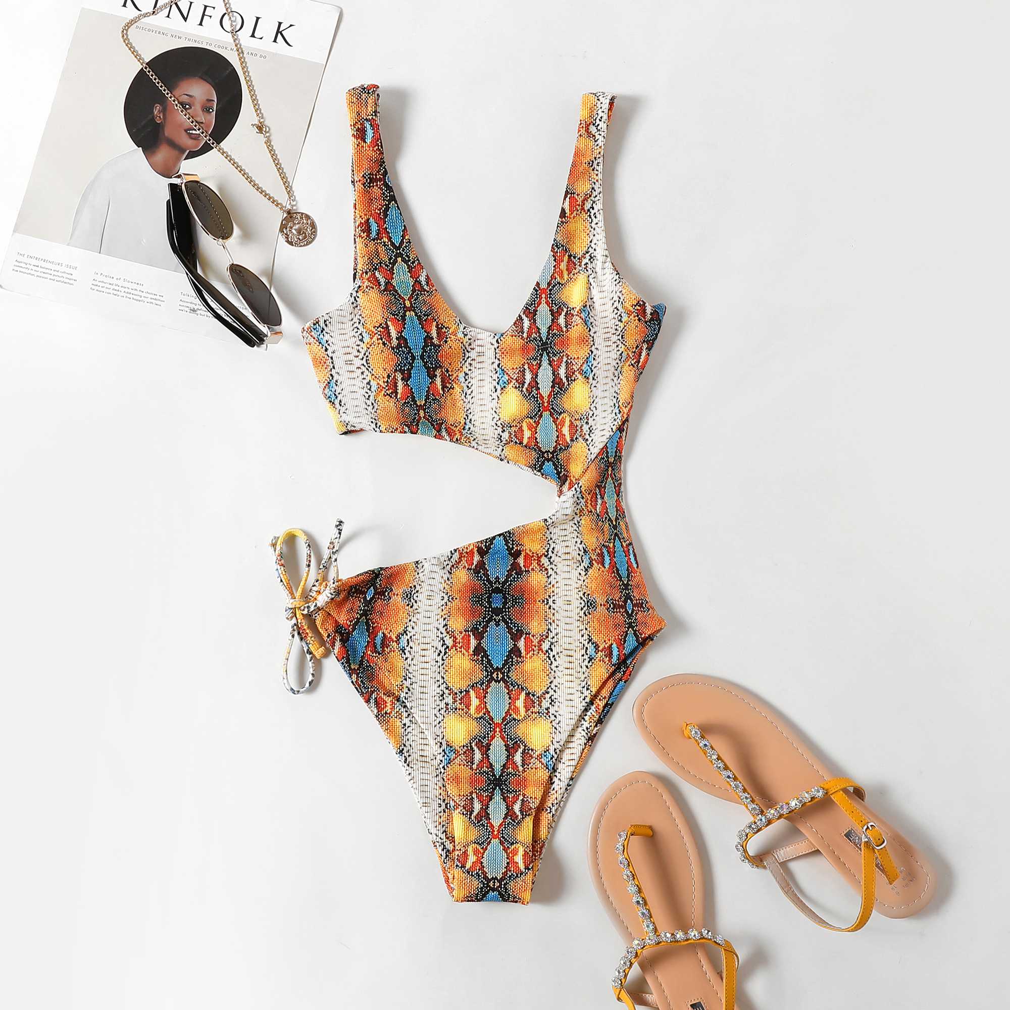 Sleeveless Printing Hollow Bandage Monokini Swimwear