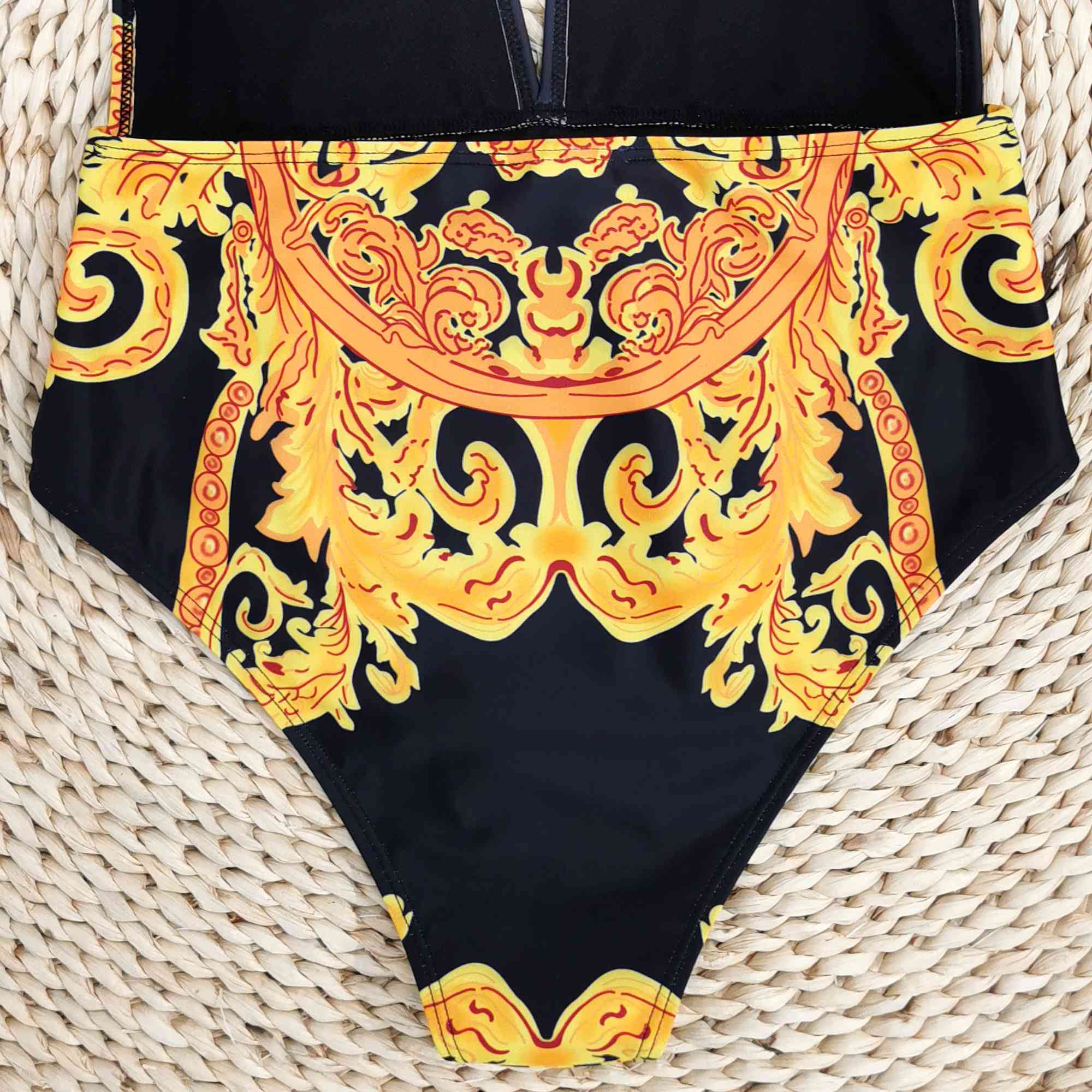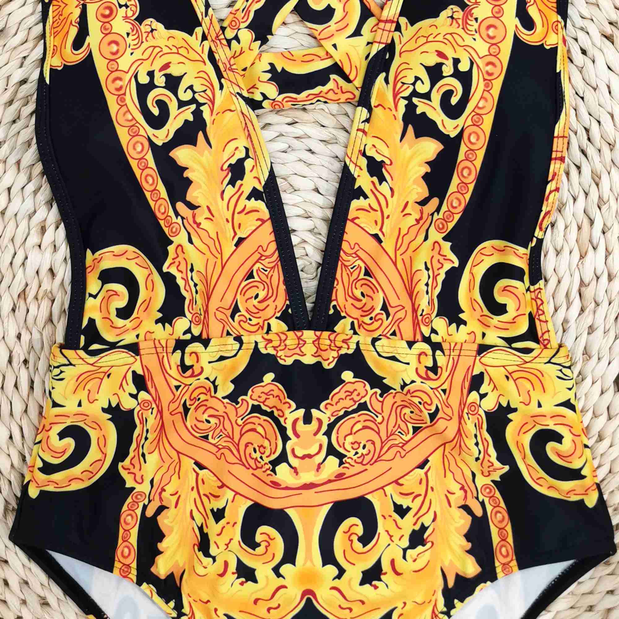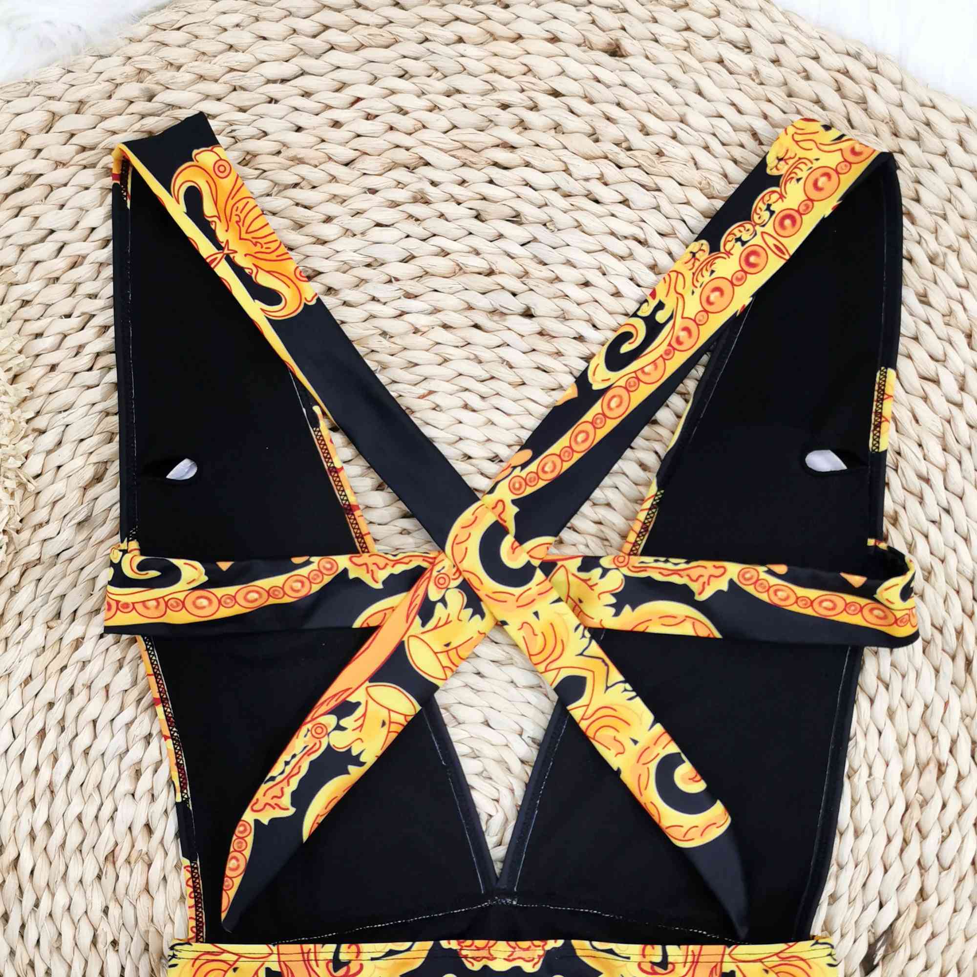 Floral Sexy Halterneck Deep V-Neck Backless One-Piece Swimwear