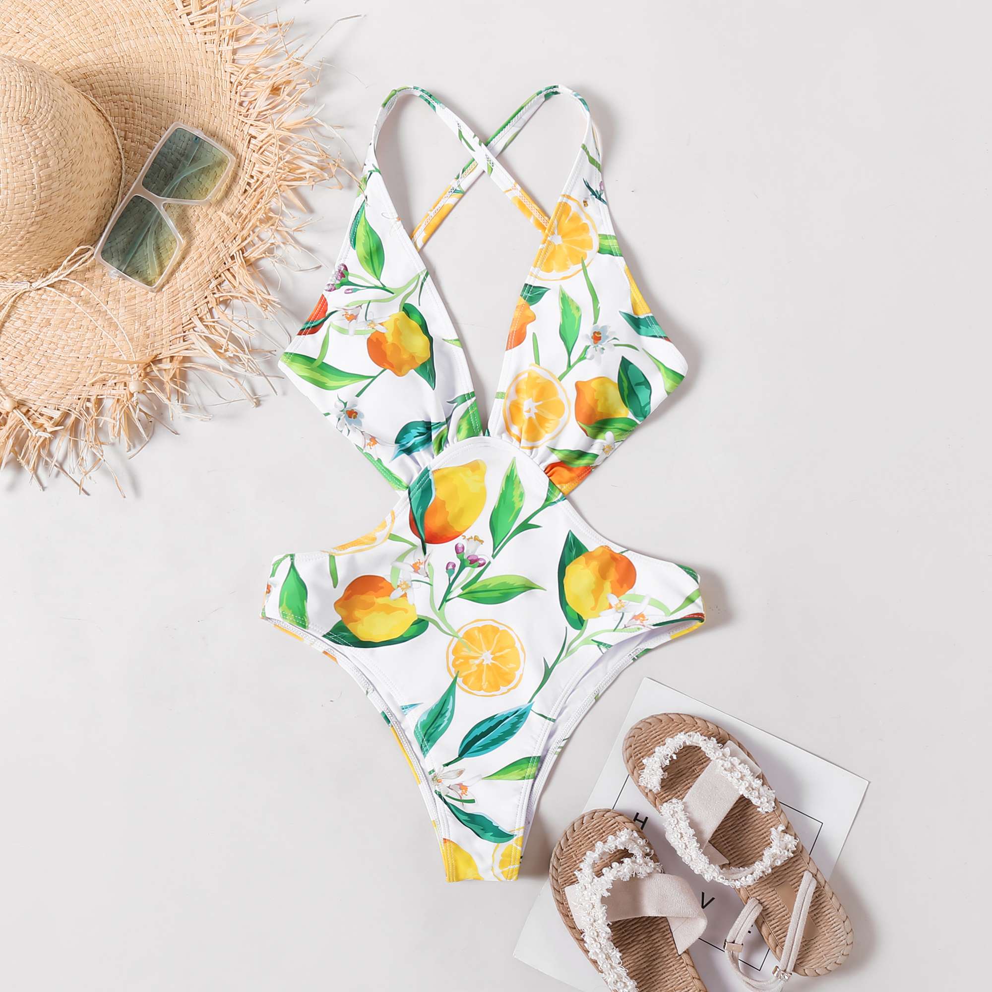Monokini V-Neck Belly-Hollowed One-Piece Swimwear