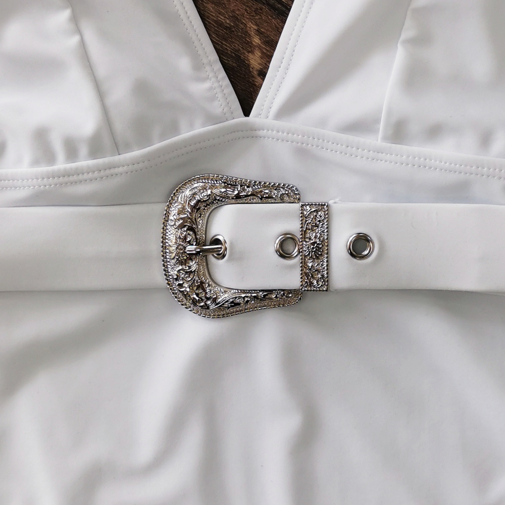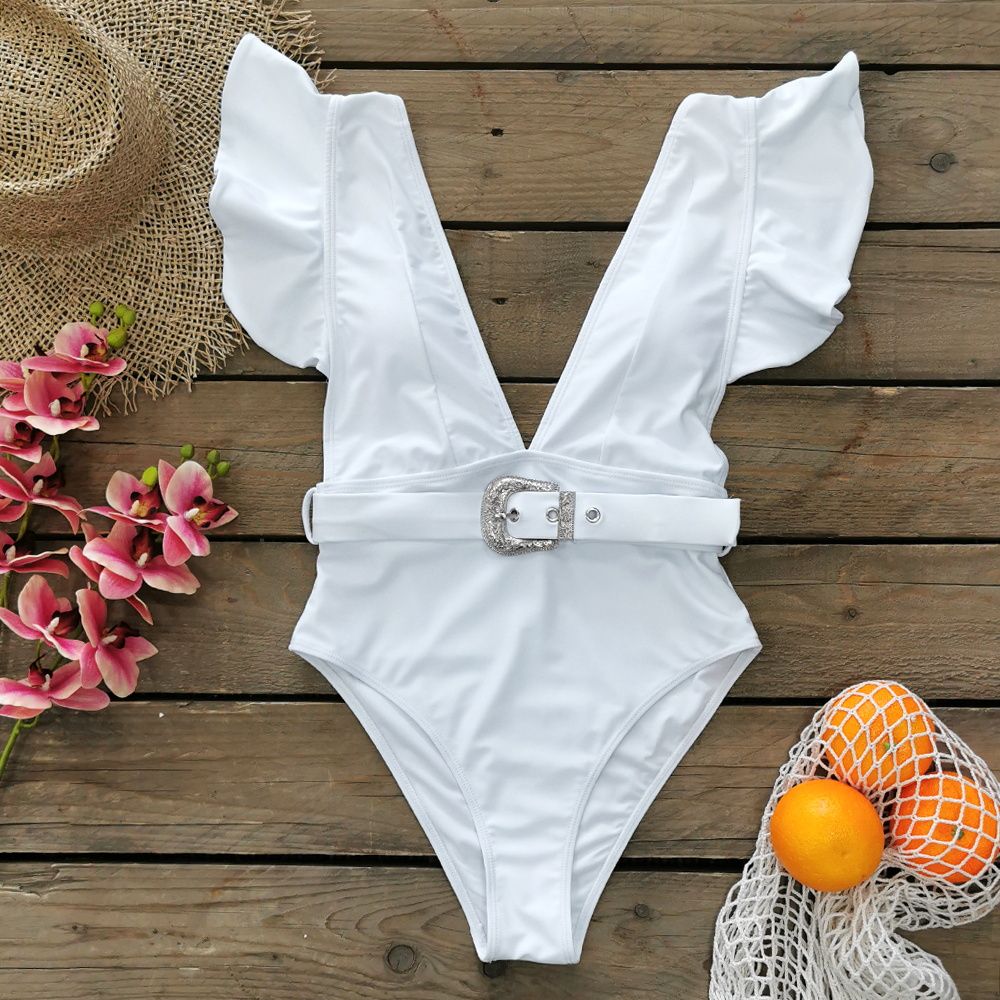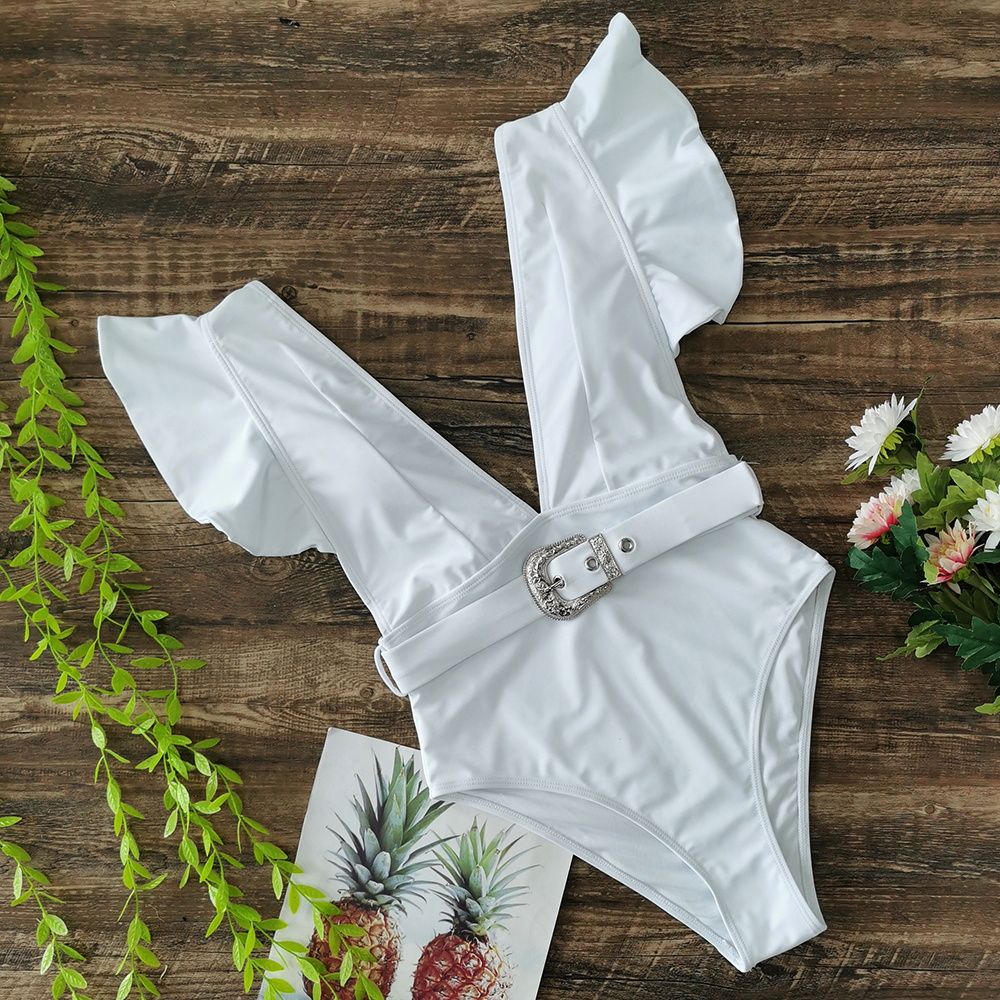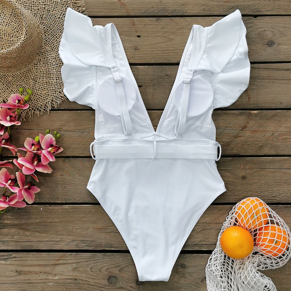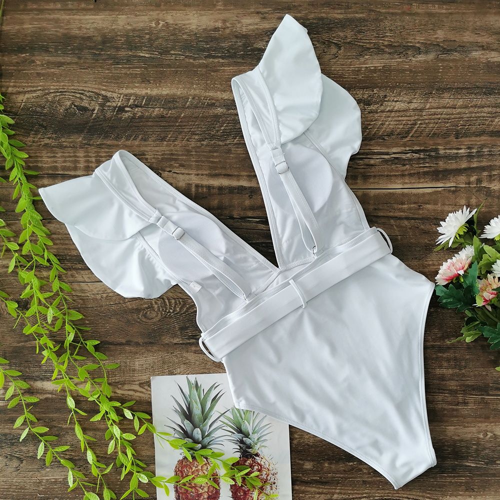 Deep V-Neck Short Sleeve Ruffled One-Piece Swimwear