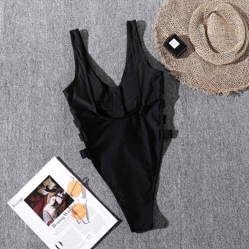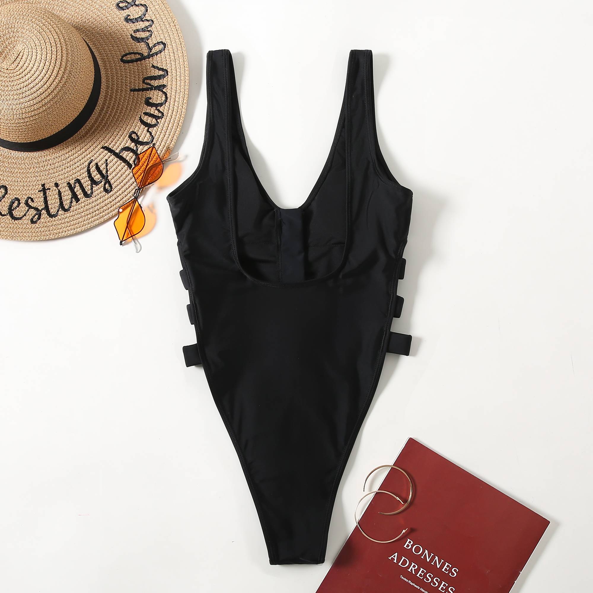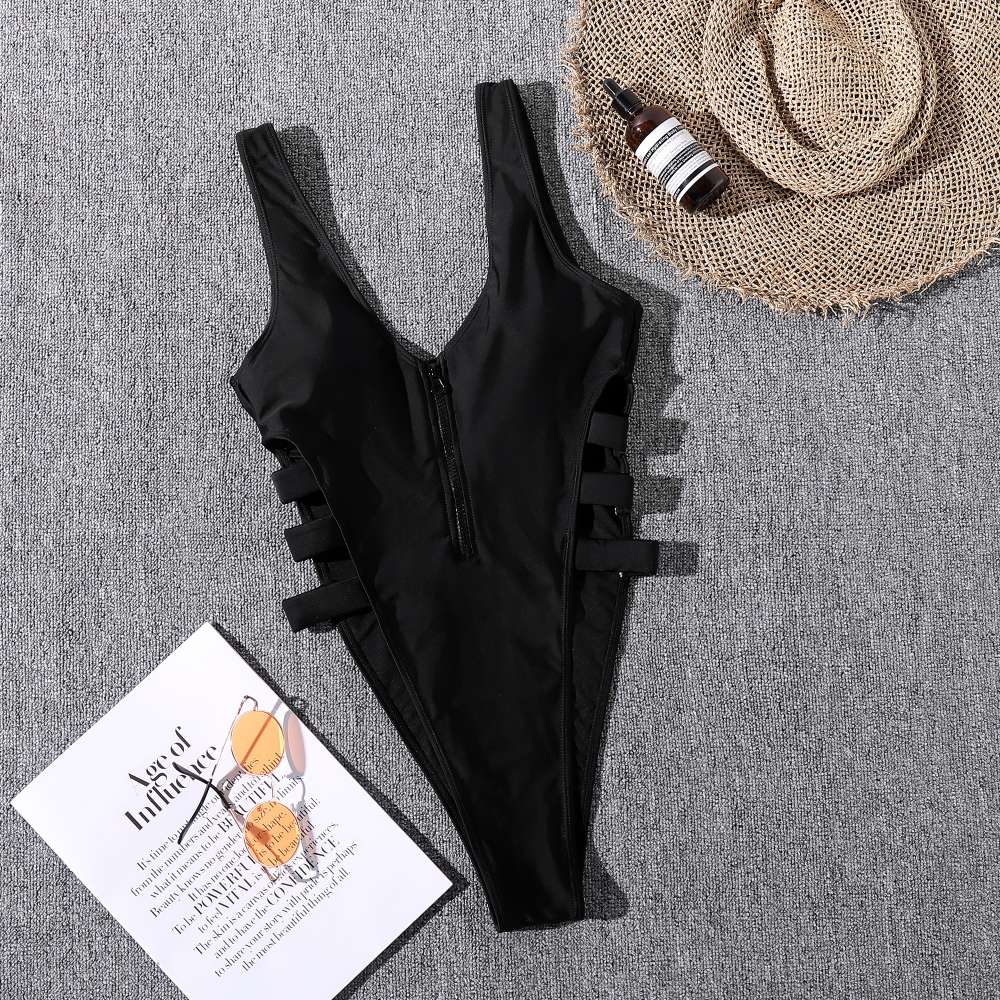 Solid Color Deep V-Neck Hollow Sexy One-Piece Swimwear