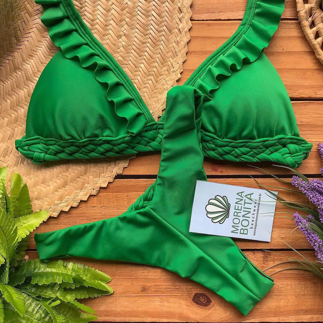 Sleeveless Falbala Bralette High-Waisted Hollow Bikini Swimwear